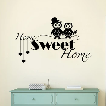 Шанс Описание for Home Decor Owls Couple Wedding Wall Sticker New Design Home Sweet Home Quote Wall Decal Removable Home Welcome Wall Mural AY1148